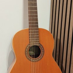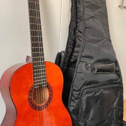 Klassisk gitarr säljes tillsammans med en tillhörande väska. Perfekt för nybörjare eller den som vill ha en extra gitarr att öva på.