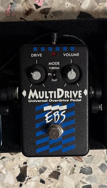EBS MultiDrive Universal Overdrive Pedal är en effektpedal för bas . Den har kontroller för Drive och Volym, samt en Mode-omkopplare för att välja mellan Tubesim, STD och Flat-lägen.
