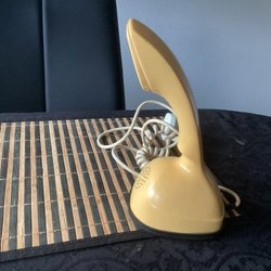 En klassisk Ericofon Cobra telefon. Tillverkad i Sverige. Ljus vanilj-gul.