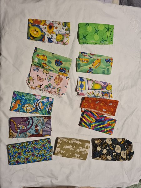 1 gäng patchworktygbitar i oanvänt skick i olika härliga färger och mönster i bomull