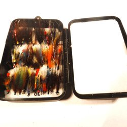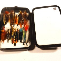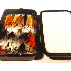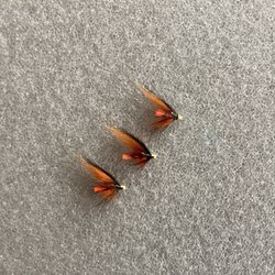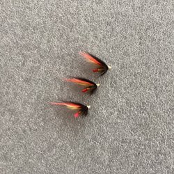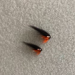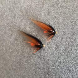 2 st. Svarta och röda lax tuber, långa 7 - 8 cm, bundna med original material.