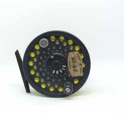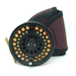 Flugrulle i svart med flera hål för viktminskning. Passar för flugfiske och har en robust konstruktion. Inkluderar en extra spole. Perfekt för den som söker en pålitlig rulle för fiskeäventyr.