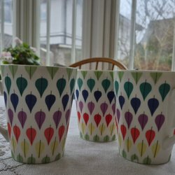 Två muggar med modern design av Stig Lindberg. Inganagg eller sprickor, fint skick.