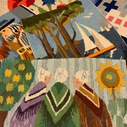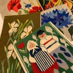 Set med Stig Lindberg muggar med olika mönster.