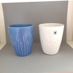 Står stadigt Stämplad undertill Cremefärgad. Oanvänd