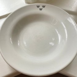 Tallrik från Gustavsberg med tre kronor. Svenska Amerika Linjen”, Gustavsberg, Firman Ferd. Lundquist & Co. mått ca 25 cm i diameter. Kan Sam fraktas med andra objekt se mina övriga auktioner .