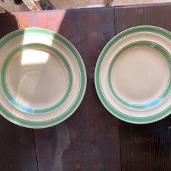 Grönt, djupstämplat ytterfoder från Gustavsberg med eklöv och ekollon.