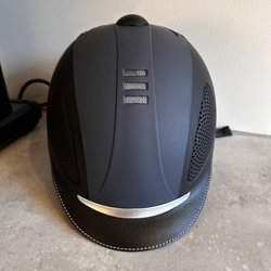 Svart ridhjälm för säkerhet under ridning. Perfekt för både träning och tävling.