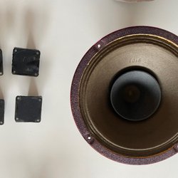 Två stycken 8 tums högtalarelement av okänd tillverkare. Liknar JBL's äldre element men är inte konstaterat. Märkta med 65434 och K53TNB samt L51T. Uppmätt resistans 7.0 respektive 6.6 Ohm.