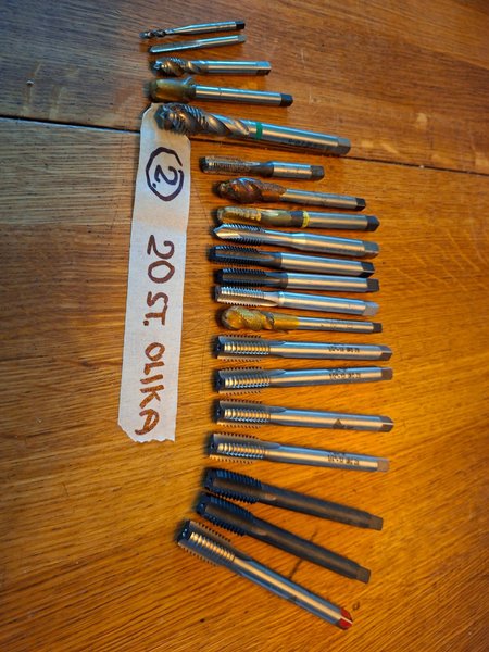 Gängtappar i olika storlekar och utföranden.M3-mer. UNF 0 UNC olka enl.bild.Nytt el. Mkt. Bra skick.20 st.