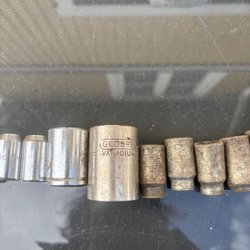 Verktyg/fasta nycklar 8, 10 och 13mm från Teng Tools, Gedore och Chrome Vanadium. Hylsorna är av olika storlekar (millimeter) och märken. Se bild 4 och 5.