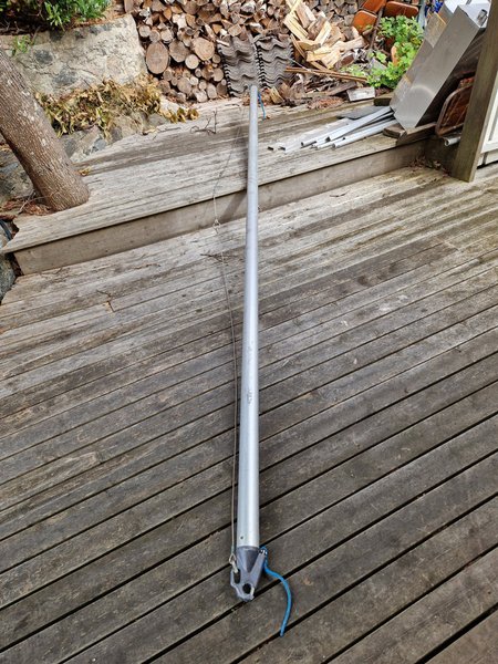 Spinnakerbom Selden i aluminium, lä 3,72 m, Diameter 63 mm med alla behövliga beslag.Kostar ny i byggsats 4.759 kr.