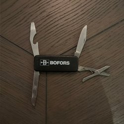 Ett multiverktyg med flera funktioner som kniv, såg, sax, korkskruv och fil.