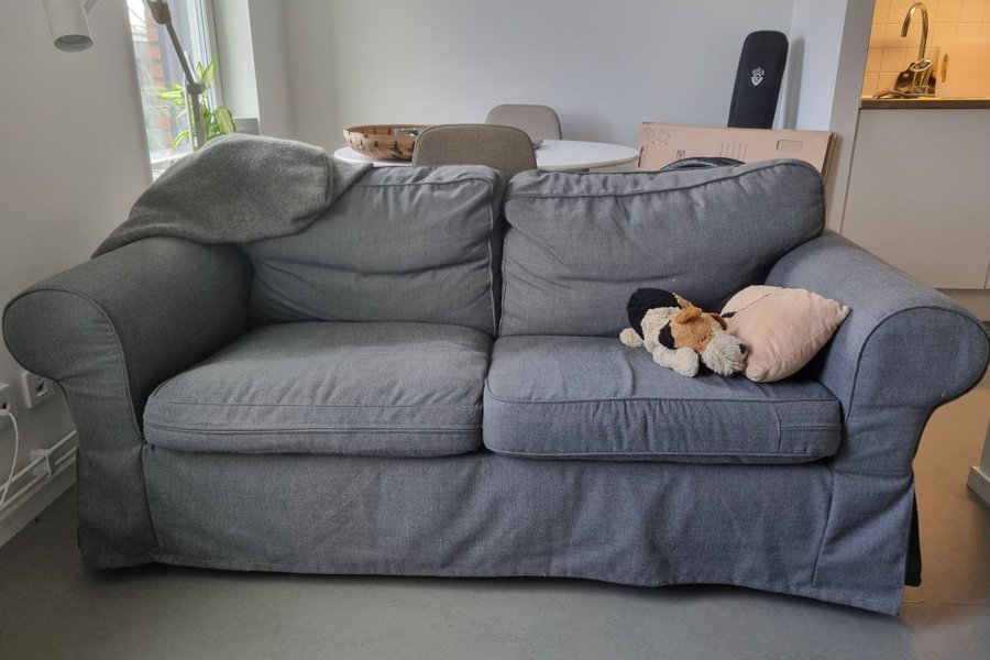 Grå tvåsitssoffa
