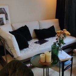Bekväm soffa i grönt. Perfekt för en student eller att ha mitt i vardagsrummet. Få en ny soffa för priset av en använd.