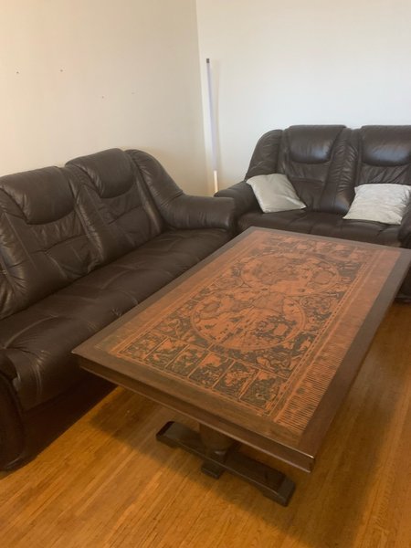 En 3:sits soffa och en 2sits soffa plus bord. Det är i bra skick.