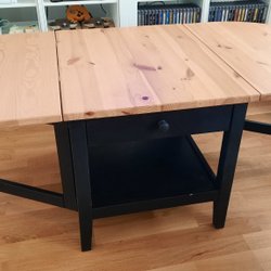 Soffbord från Jysk, ”Kildedal”. Bordet har en bordsskiva i laminat och ett underrede i pulverlackerat stål. Perfekt som ett litet sidobord eller soffbord. 60 x 60 cm. Helt nytt, aldrig använt. Nytt i kartong.