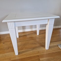 Alvar Aalto bord med hvid bordplade og lyse træben. Perfekt som sofabord eller sidebord.