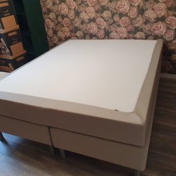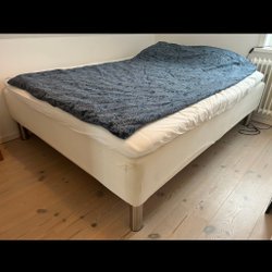 Säng med ribbotten. Madrass ingår, stolar, mattar och bord alla per 980 Kr.