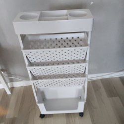 En elegant rullvagn som passar perfekt för servering eller som en stilfull inredningsdetalj. Den har två hyllor och hjul för enkel förflyttning. Lite rostig men det går att åtgärda.