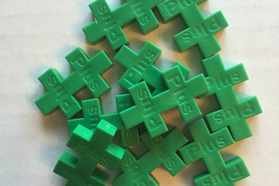 Plus Plus är roliga byggbitar i plast. Varje bit ser ut som två ihopsatta plustecken.