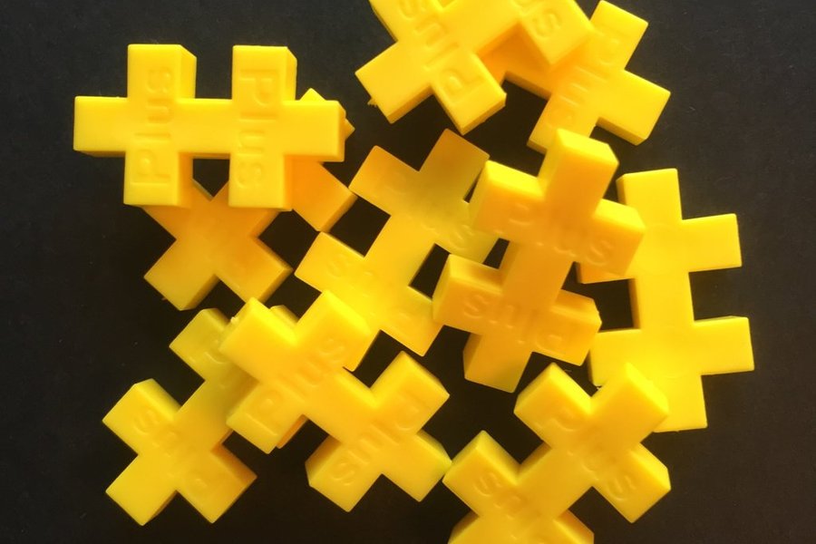 Plus Plus är roliga byggbitar i plast. Varje bit ser ut som två ihopsatta plustecken.