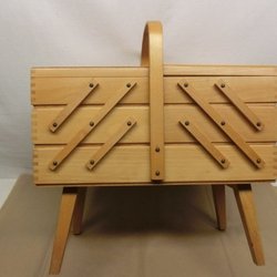 Syskrin i trä med lock och invändig förvaringslåda. Se bild för mått