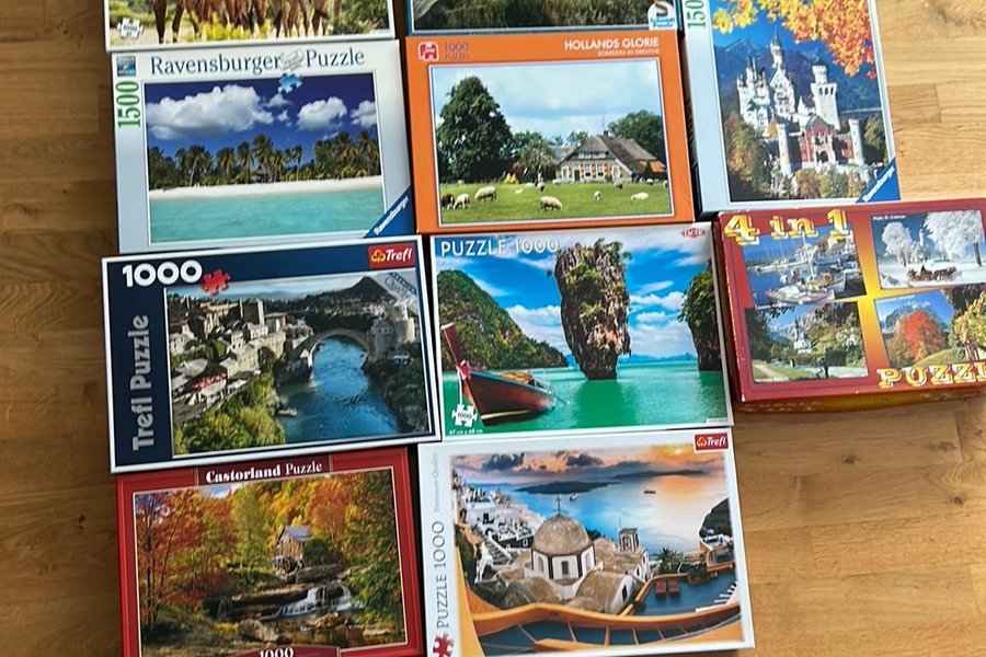 Diverse pussel säljes. Innehåller pussel från Ravensburger, Trefl och Castorland. Antal bitar varierar.