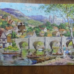 Träpussel från 1975. Tillverkat av Kärnan AB i Helsingborg. Orginalförpackning som är lite slitet (se bild). Annars helt komplett!