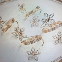 Handvirkad väska i en vacker rosa nyans med ett dekorativt guldspänne i form av en rosett. Väskan har runda trähandtag som ger den en unik och stilfull touch. Den plisserade designen ger väskan en intressant textur och form.