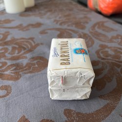 Förpackningen har ett mindre bruksmärke/veck i pappret, men tvålen är oöppnad och oanvänd.