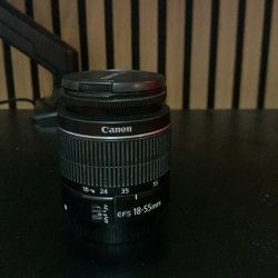 Canon EOS 1100D systemkamera i svart utförande. Kameran har en Canon-logotyp på framsidan och modellbeteckningen EOS 1100D synlig på sidan. Objektivlocket är också märkt med Canon.