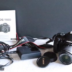 Säljer en Canon EOS 1100D systemkamera. Kameran har en 18-55mm lins. Kameran är utrustad med en 12,2 megapixels APS-C CMOS-sensor och Canons DIGIC 4 bildprocessor. Den har en ISO-känslighet på 100-6400, vilket möjliggör fotografering i olika ljusförhållanden. Kameran kan spela in HD-video i 720p. Den har en 2,7-tums LCD-skärm för bildvisning och menynavigering. Kameran har olika fotograferingslägen, inklusive helautomatisk, manuell och motivprogram. Den har också en inbyggd blixt och möjlighet att ansluta extern blixt via hot shoe. Kameran använder SD/SDHC/SDXC-minneskort för lagring av bilder och videor. Medföljer laddare palla kablar över en smidig väska där du får plats med allt som finns med
