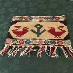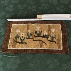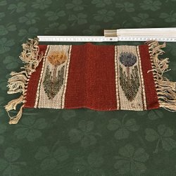 En väggbonad med motiv av barn som leker utomhus. Den har en detaljerad bild med många färger.handgjord