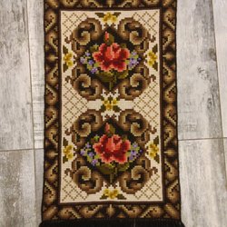 Bredd cirka 115 cm, längd utan fransar 48 cm, med fransar cirka 64 cm.