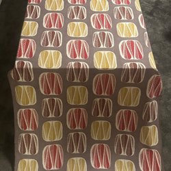 Färgglad stuvbit i bomullspoplin med ett paisley-inspirerat mönster i ränder i lila, rött, gult och turkost. Tyget har en söm mitt i som visas på tredje bilden