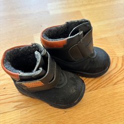 Ett par svarta kängor från Kavat. De har kardborreband som gör dem lätta att ta på och av. Perfekt för lek och äventyr. Varma!