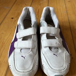 Puma medkardborreband så barnet slipper knyta. Dessaskorna behöver innesulor, går kanon bra att använda som slit o släng oömaskor,tex,målar, lär sig cykla osv. Absolut inga fin skor..