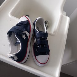 Ett par använda Converse i blå färg, men har många promenader kvar....storlek 31, sulan är 22 cm lång.