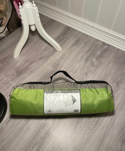 Ett Backpacker 2 tält i sin förpackning. Perfekt för camping och utomhusaktiviteter.