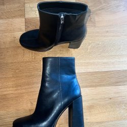 Nya Svarta wedges ankelstövlar från Steve Madden strl 41 i skinn. Innermått 26,2 cm Nypris 2600kr.