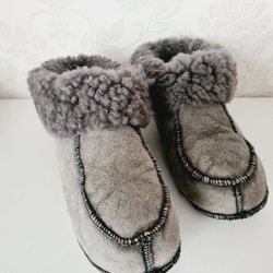 Ett par handstickade, gröna tofflor. Perfekt för att hålla fötterna varma och sköna under kalla dagar. Bekväma och lätta att ta på.