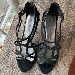 Eleganta svarta sandaletter från Jean De Frès. Perfekta för både vardag och fest. Stilren design med smala remmar och spetsig tå.Mörk blå nästan svarta.