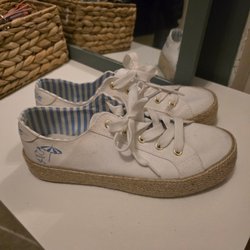 Eleganta vita pumps med en dekorativ rem med pärlor runt ankeln. Perfekt för festliga tillfällen eller för att piffa upp vardagsoutfiten.Köpte här men passade inte.