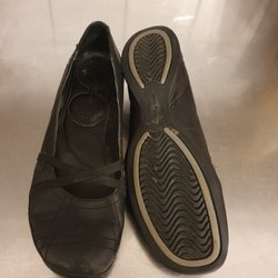 Svarta ballerinaskor med en lite tjokare sula från Vagabond. Stilren design i läder. Storlek 39. Har använts med inläggssula så orginalsulan är väldigt fräsch.