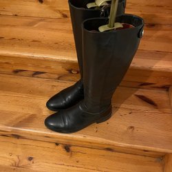 Ett par svarta stövlar i wrsternstil Perfekt för alla tillfällen.