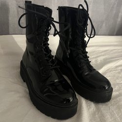 Färgblock stövlar med snörning. Stövlarna har ett färgstarkt foder.