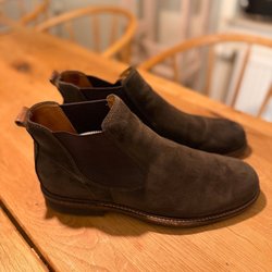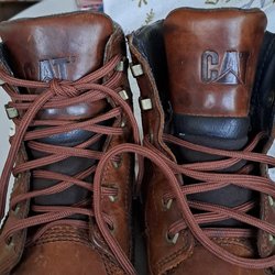 Ett par bruna boots.