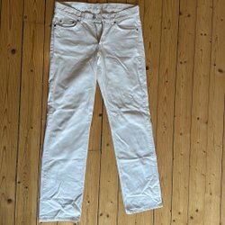 Blåa jeans från arket i rak modell, har även klippt en egen slits längst ner på ytterkanten på båda sidorna. Nästan nyskick, ej använt så mycket.