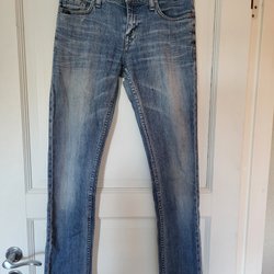 Ett par ljusblå jeans med klassisk design. Jeansen har fickor fram och bak. I storlek 28/32 modellen Roxie.
